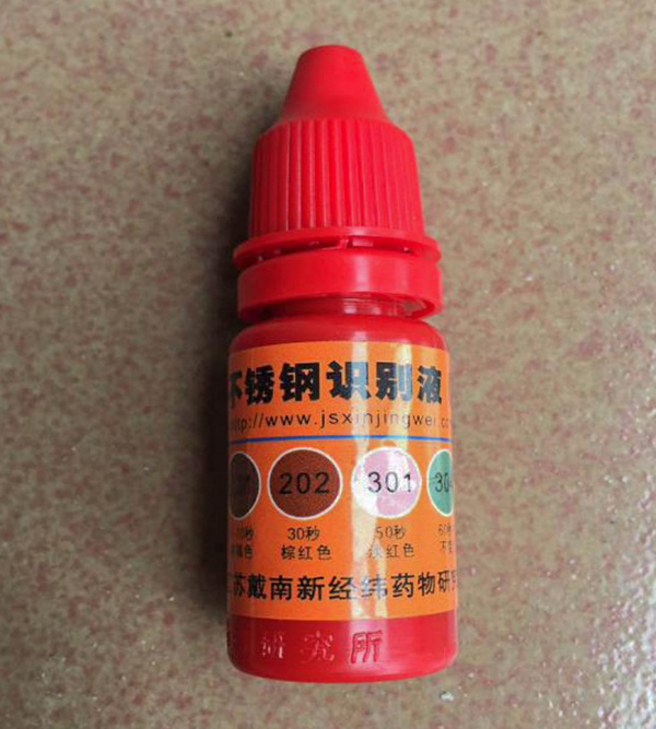 泫氏廠家對(duì)不銹鋼卡箍材質(zhì)采用光譜分析儀進(jìn)行檢測(cè);用戶也可采用不銹鋼識(shí)別液進(jìn)行鑒定,這是一種通過識(shí)別卡箍材質(zhì)是否含鎳來判斷劣質(zhì)200系列卡箍和300系列卡箍的簡(jiǎn)易方法,如圖所示。