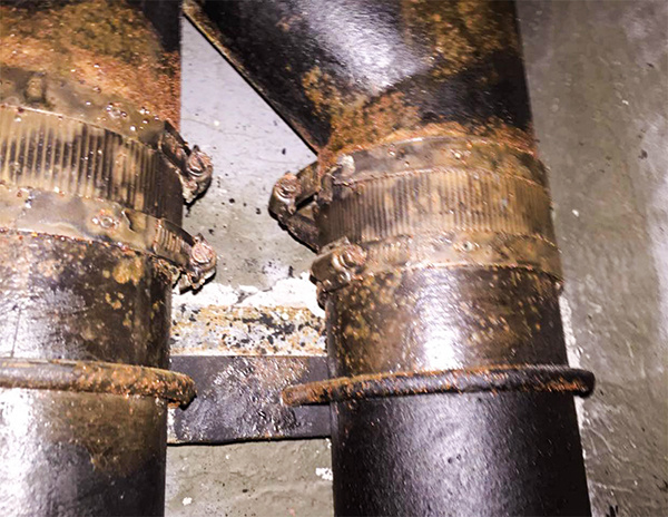 除了管材管件應(yīng)該符合國家標(biāo)準(zhǔn)以外,***重要的就是連接配件,市面上數(shù)不清的小廠卡箍以假亂真,用肉眼根本無法識(shí)別,如果黑心的商家選用了劣質(zhì)200系列材質(zhì)的卡箍后果不堪設(shè)想,不僅極易被腐蝕,而且容易斷裂。如上圖所示,僅僅使用了10個(gè)月的201材質(zhì)卡箍出現(xiàn)了腐蝕、斷裂的情況。